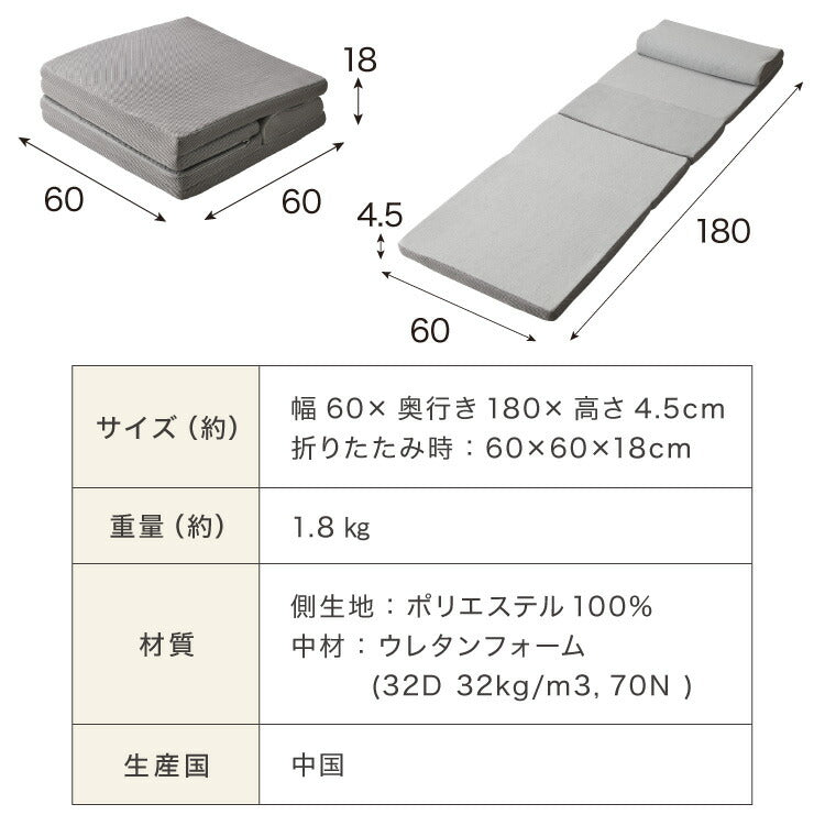 ごろ寝マット 折りたたみ 枕付き 両面タイプ タオル生地 メッシュ生地 消臭 抗菌 防臭 洗える カバー付き 60×180cm 持ち運び コンパクト 大人 ゴムバンド付き ごろ寝クッション 長座布団 マットレス