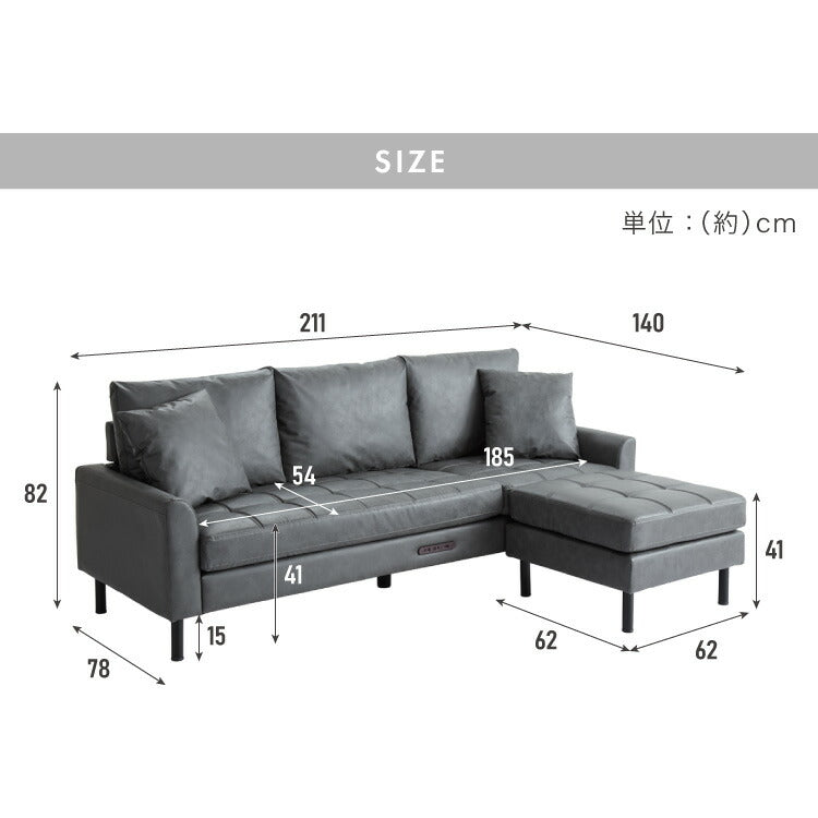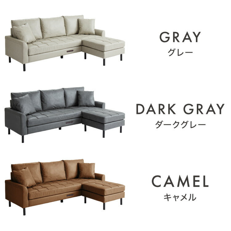 ソファ カウチソファ コンセント USB 充電 3人掛け L字型 あぐら ファブリックレザー 幅210 カウチ 組合せ ヴィンテージ 家族 リビング 革風 ルンバ お掃除 オットマン ロータイプ おしゃれ 座り心地(代引不可)