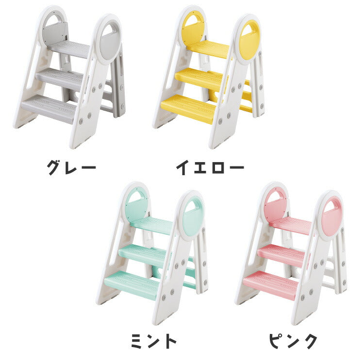 キッズステップ台、高さ2段階調節、折り畳み収納、省スペース、トイレ踏み台、補助台、お手伝い、ステップスツール、足置き台、昇降、お子様、キッズ、幼児、男の子、女の子、グレー、イエロー、ミント、ピンク