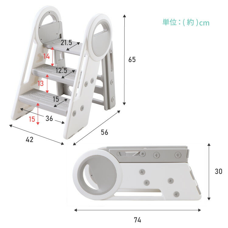 踏み台 折りたたみ 子ども 2段 3段 可変式 コンパクト 耐荷重75kg 安全素材 HDPE お手入れ簡単 防水 手すり付き 滑り止め 洗面所 キッチン トイレ 手洗い 椅子 キッズステップ ステップ台 脚立