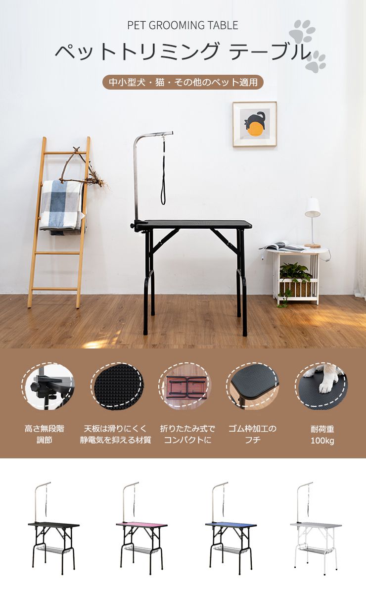 トリミングテーブル 折りたたみ 棚付き トリミング台 トリミング 折り畳み グルーミング 高さ75cm 犬用 猫用 テーブル ペット用 シャンプー カット ブロー ブラッシング 爪切り バリカン お手入れ トリマー 小型犬 中型犬 犬 猫 ペット用品