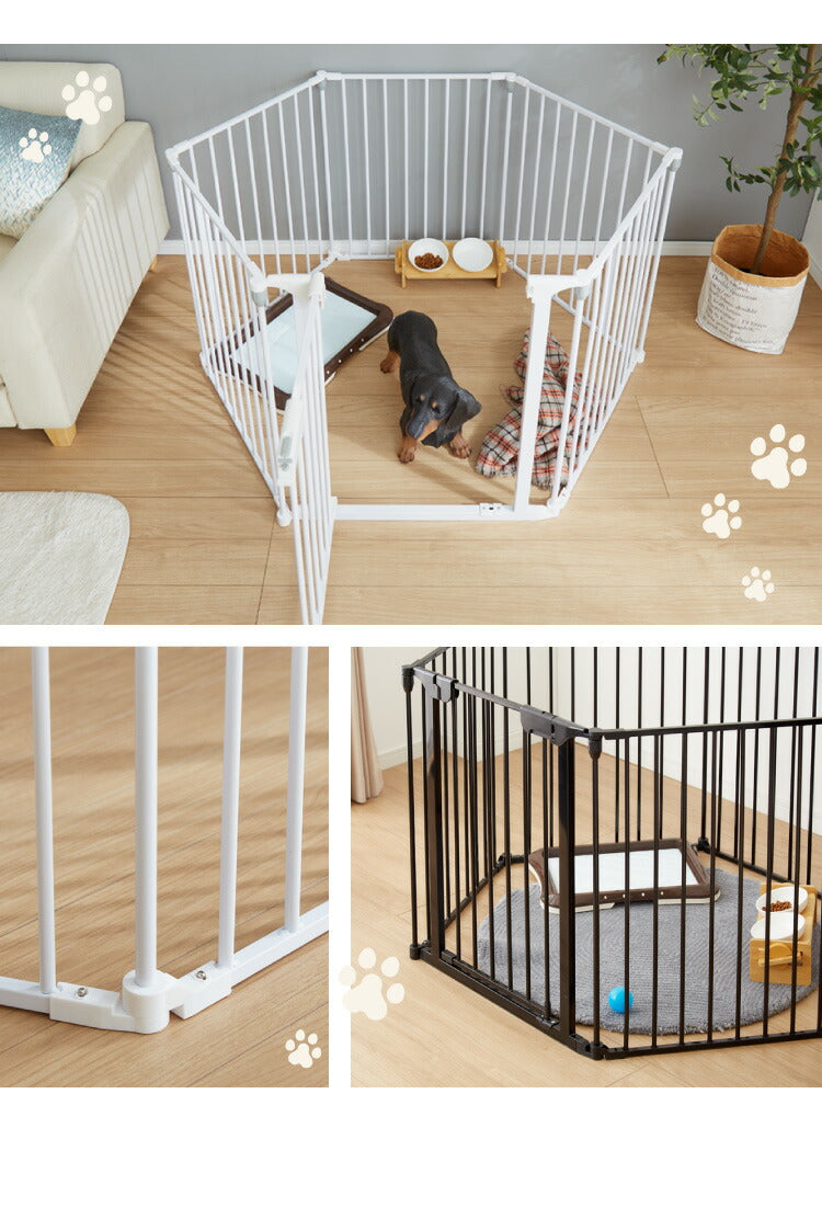 ペットフェンス、ジョイント、ドア付き、組立簡単、置くだけ、ペット、室内、屋内、ペットサークル、柵、ドッグ、ケージ、パーテーション、ペット用品、ペットグッズ、フェンス、犬、猫、工具不要、コンパクト、ブラック、ホワイト