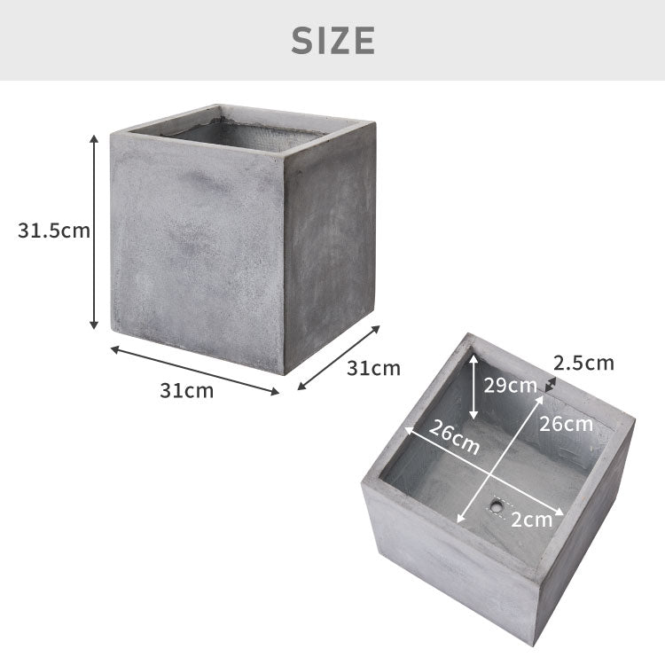 プランター 大型 32×32cm スクエア コンクリート おしゃれ モダン ガーデニング 植木鉢 鉢カバー プランターカバー プランターボックス ファイバークレイ 観葉植物 屋外 室内 軽い