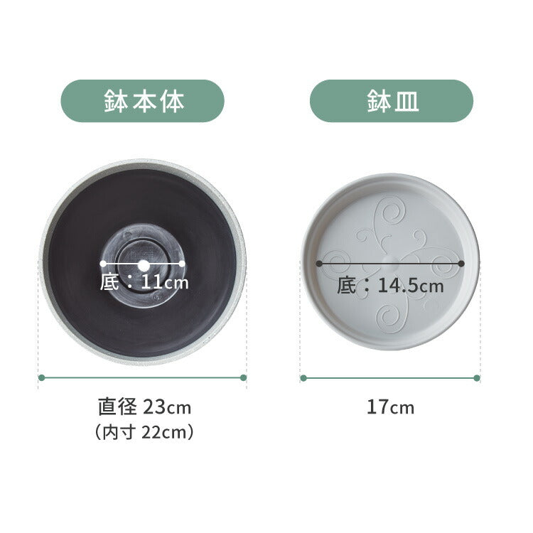植木鉢 鉢 直径23cm 8号 おしゃれ モダン ガーデニング 植木鉢 鉢カバー プランターカバー PP樹脂 観葉植物 屋外 室内 軽い インテリア 鉢皿 ソーサー付き グレー