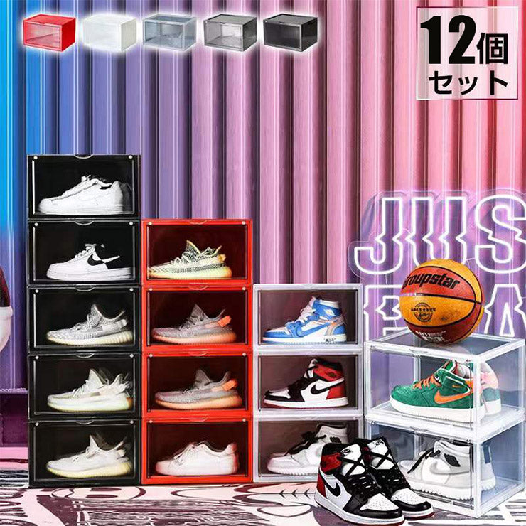 シューズボックス クリア 12個セット スニーカー 透明 スタッキング可 水洗い可 ハイカット対応 おしゃれ インテリア シューズケース コレクションケース