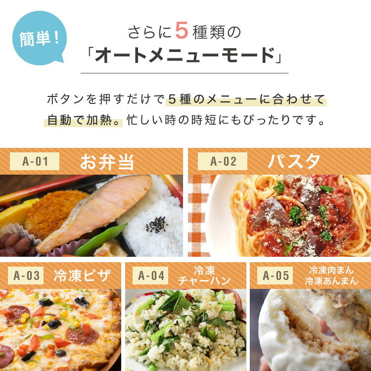 一人暮らし、ひとり暮らし、新生活、レンジ、コンパクト、単機能レンジ、全国対応、東日本、西日本、あたため、オートメニュー、自動調理、牛乳、飲み物、ワンタッチ、自動あたため、お手入れ簡単、200W、簡単調理