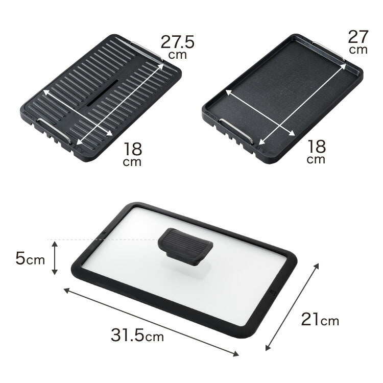 スモーク、魚焼き器、焼肉、プレート2種付き、グリルプレート、フラットプレート、タッチ式、煙が出ない、スモークレス、卓上、ホームパーティー、温度調節、油落とし、穴あき、外して洗えるプレート、焼きそば、マルチグリル