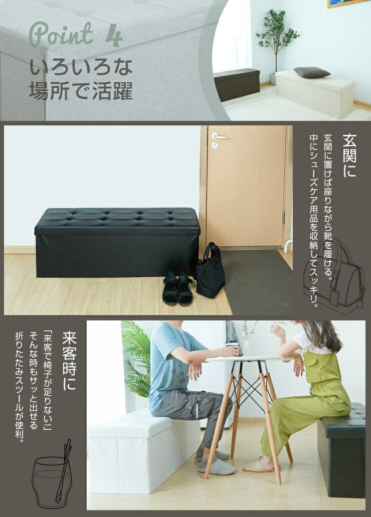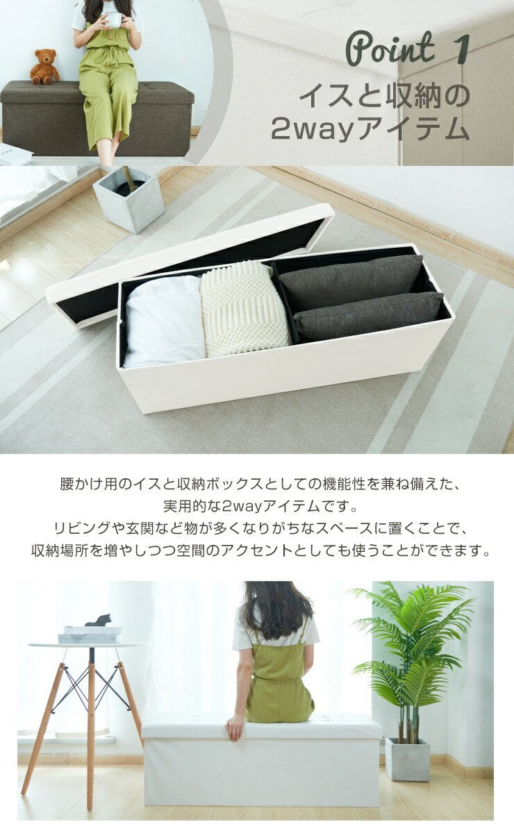 スツール 収納スツール 幅110cm PVC ファブリック 折りたたみ ワイド 2人掛け 収納ベンチ 収納付き 蓋付き ベンチ 3人掛け 北欧 インテリア ボックススツール 椅子 収納ボックス ベンチ オットマン 収納 ソファ ダイニングベンチ