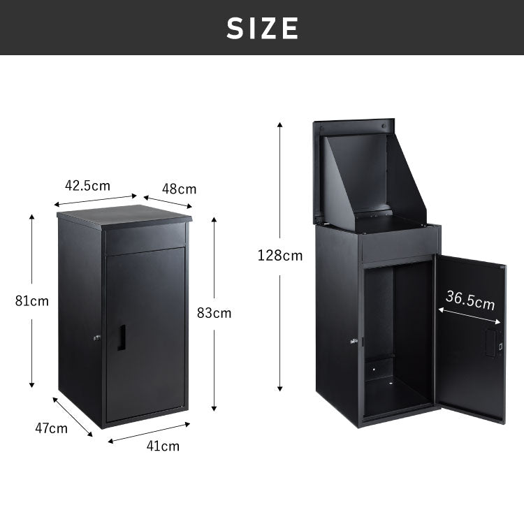 宅配ボックス、大容量、大型、一戸建て用、幅42.5×奥行き48×高さ83cm、120L、置き型、置き配、家庭用、マンション、アパート、鍵付き、屋外、玄関、宅配ポスト、宅配ロッカー、配達ポスト、宅配BOX、荷物、宅配便、ブラック、おしゃれ