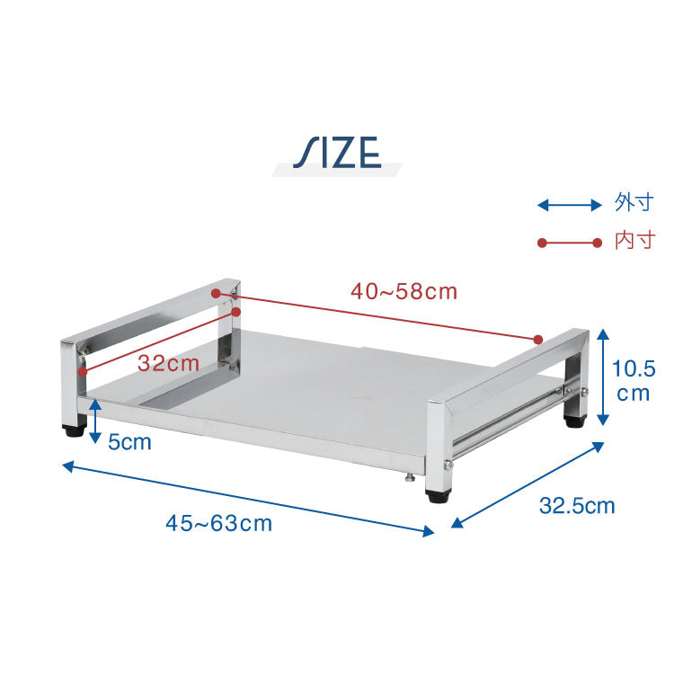日本製 燕三条 食洗機ラック 伸縮式 幅45~63cm ロータイプ 高さ5cm シンクに渡せる 頑丈ステンレス 食洗機台 食洗器台 食洗器ラック 置き台 シンク上 シンクサイド 伸縮ラック 水切り