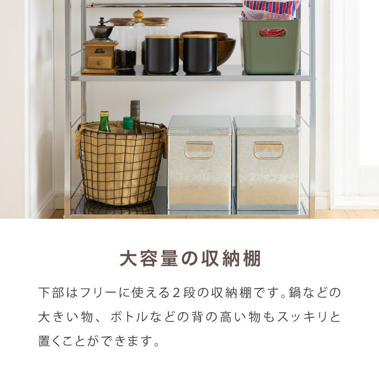 引き出しと複数の棚が付いているため、調理器具や食材、その他のキッチン用品を整理整頓して収納することができます。