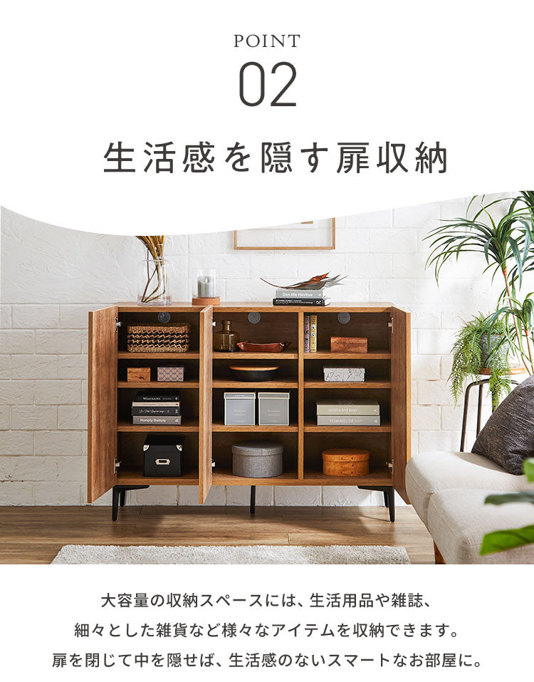キャビネット 幅120 脚付き サイドボード リビングボード リビング収納 おしゃれ 北欧 ヴィンテージ 木目 木製 完成品 大容量 本棚 書棚 リビング 収納 シェルフ コード穴 扉付き 棚 テレビ台(代引不可)