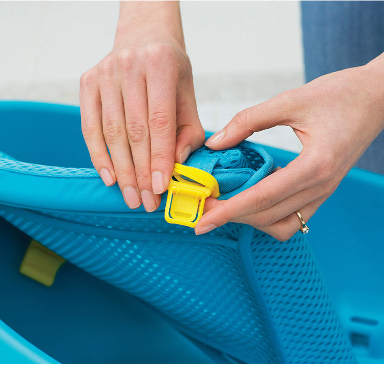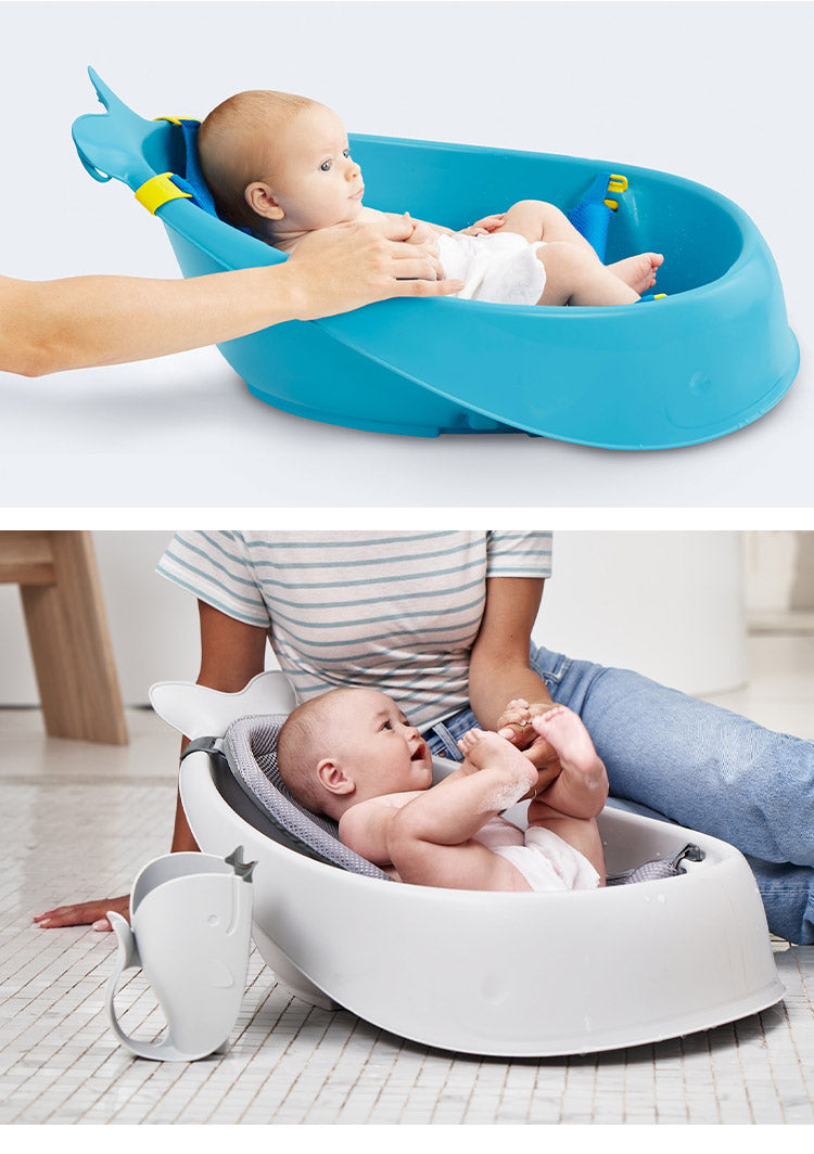 ファミリーのための育児総合ブランド SKIP HOP(スキップホップ)のベビーバス。 3通りの使い方ができロングユース。成長に合わせてメッシュの位置を変更して、安全で楽しいバスタイムを。 ステージ1:首すわり前のお子さまの自然な姿勢をやさしく、しっかり支えます。 ステージ2:首すわり後はソファーのような心地よさのバスタイムに ステージ3:入浴だけでなく水遊び用の簡易プールとしても 容量:満水時 約20L