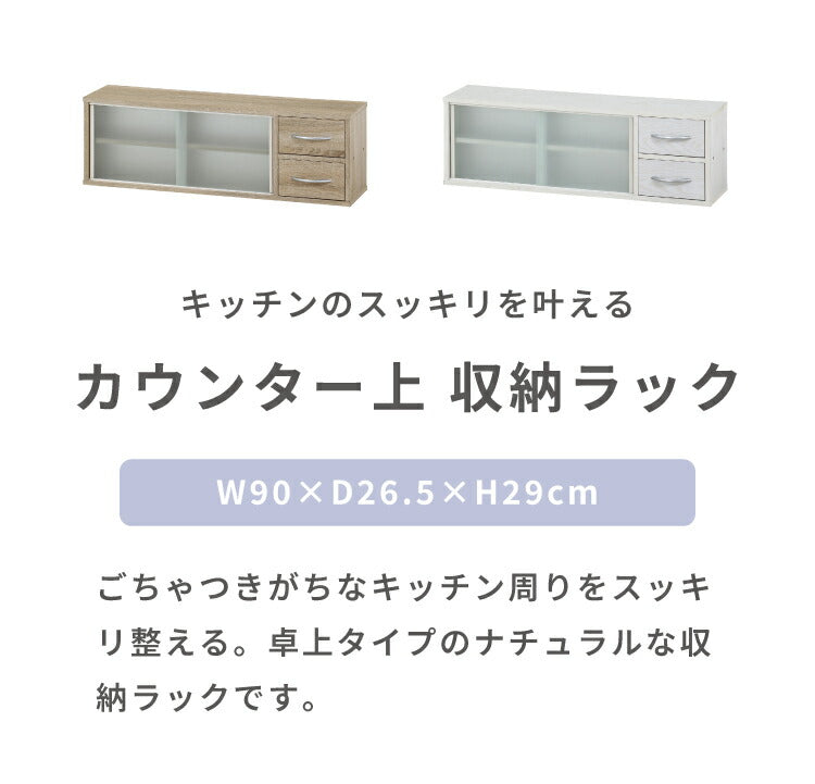 カウンター上収納 幅90cm 調味料ラック 引き出し カトラリーボックス 収納ラック スパイスラック 木目調 キッチン リビング ダイニング キッチン収納