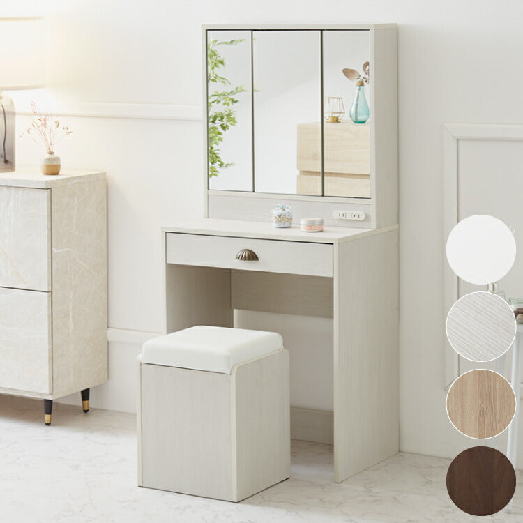 ドレッサー 三面鏡 椅子付 セット 三面鏡タイプ 白 コンセント付き スツール付き おしゃれ 可愛い かわいい ホワイト フレンチ 北欧 3面 化粧台 鏡 ミラー 花台 収納コスメワゴン 机 インテリア コスメワゴン 収納 メイク台 代引不可