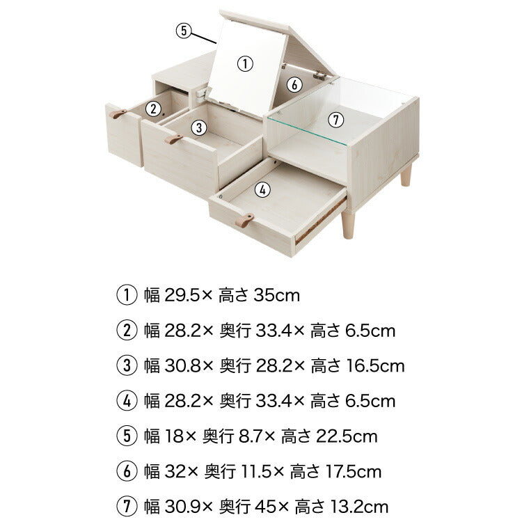 ドレッサー ローテーブル 幅90×奥行45×高さ38cm 化粧台 センターテーブル コンパクト コスメテーブル コスメ収納 鏡台 ガラステーブル メイク 鏡 ミラー リビング ワンルーム 一人暮らし おしゃれ