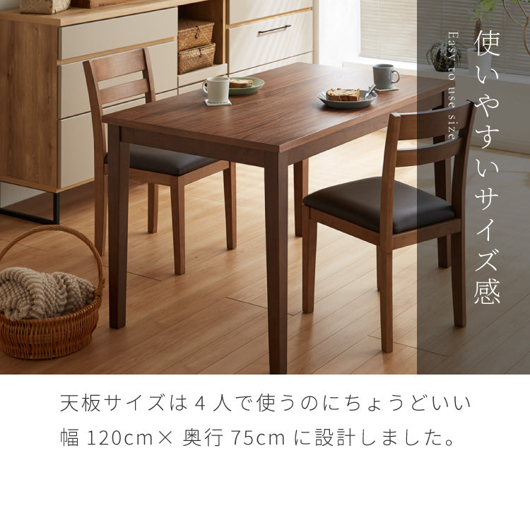 ダイニングテーブル 天然木 幅120 奥行75 4人掛け 木目調 ナチュラル 木製 120×75cm ブラウン リビング ダイニング パソコンデスク つくえ 机 デスク テーブル 丈夫 食卓テーブル