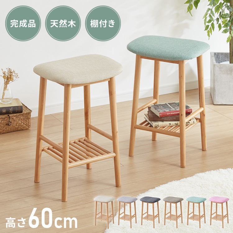 アルダー材を使ったファブリックスツール ランド 棚付き ハイタイプ ハイスツール アルダー材 天然木 無垢材 ウッドスツール キッチンスツール おしゃれ 北欧 木製椅子 カウンタースツール