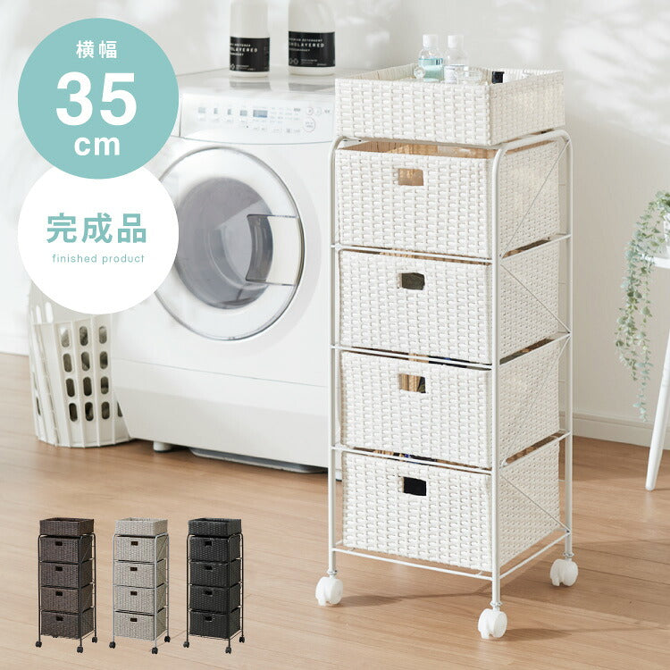 キャスター付きラタン調サニタリー収納 幅35cm
