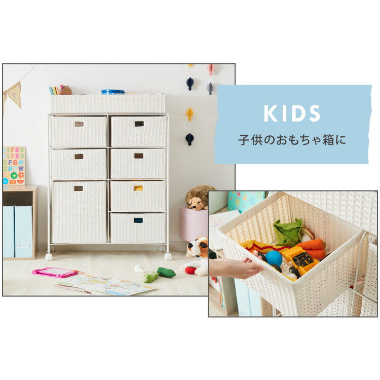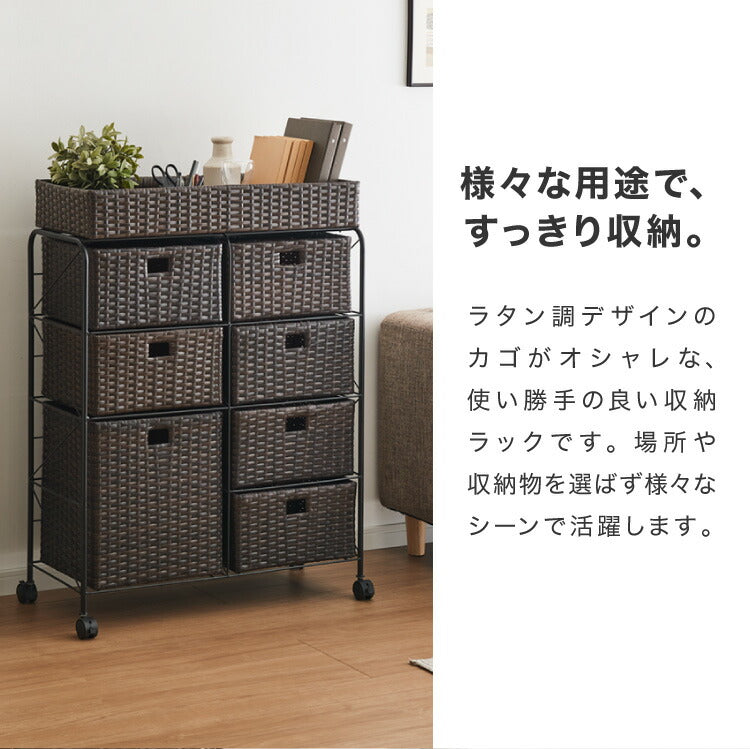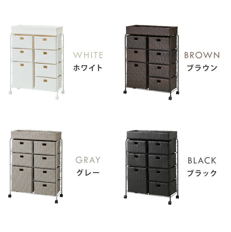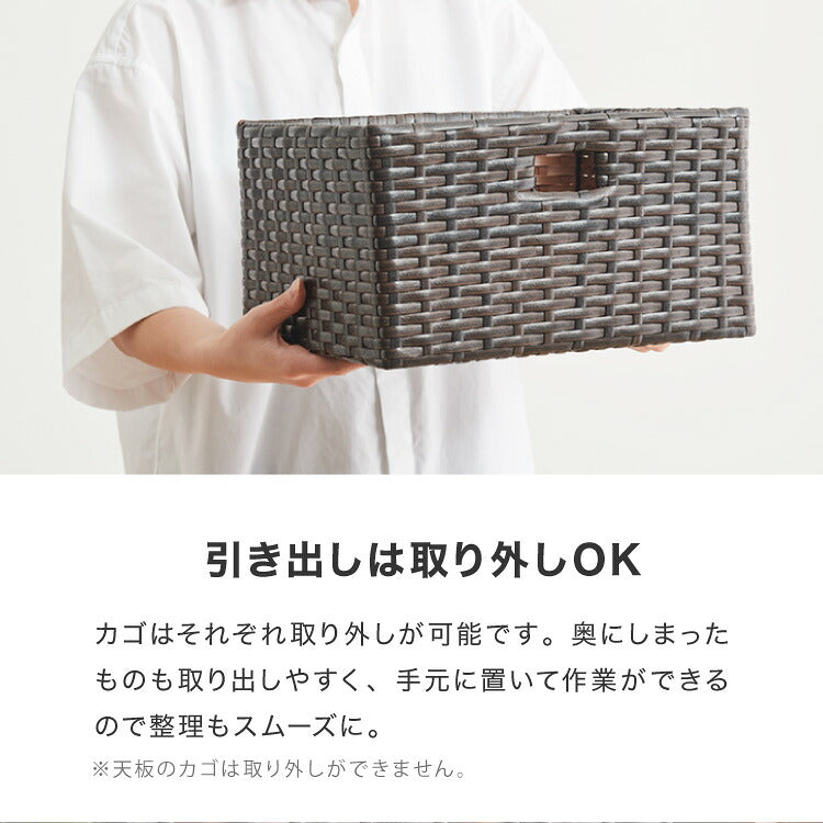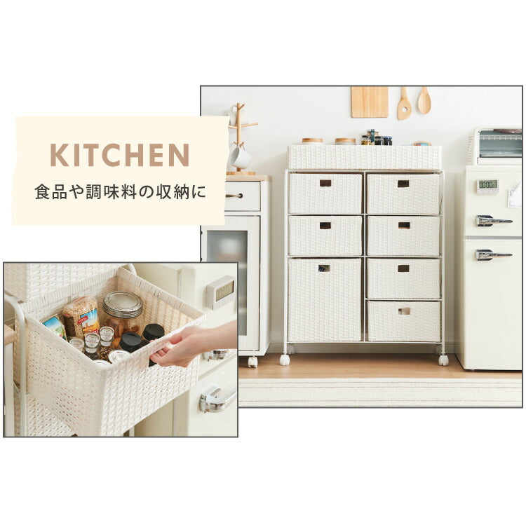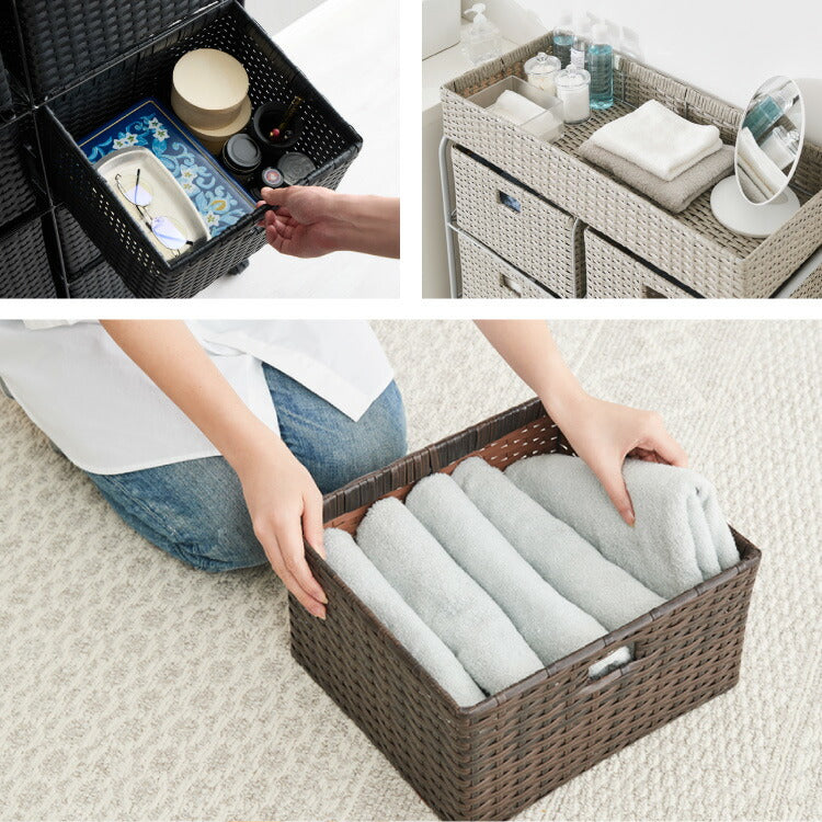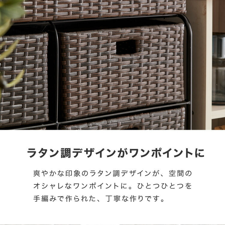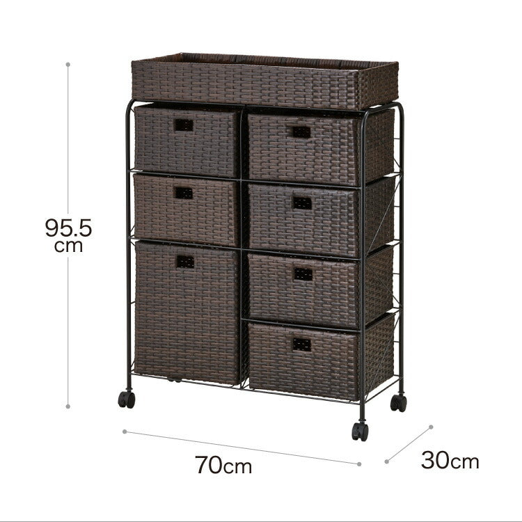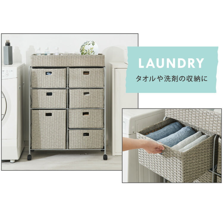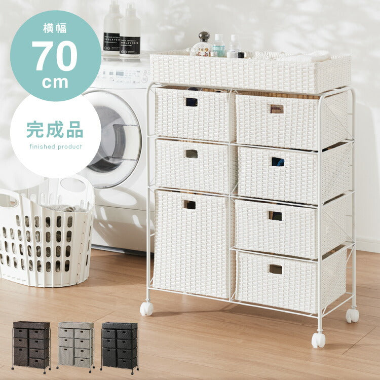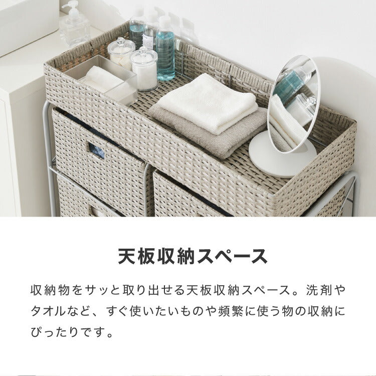 キャスター付きラタン調サニタリー収納 幅70cm