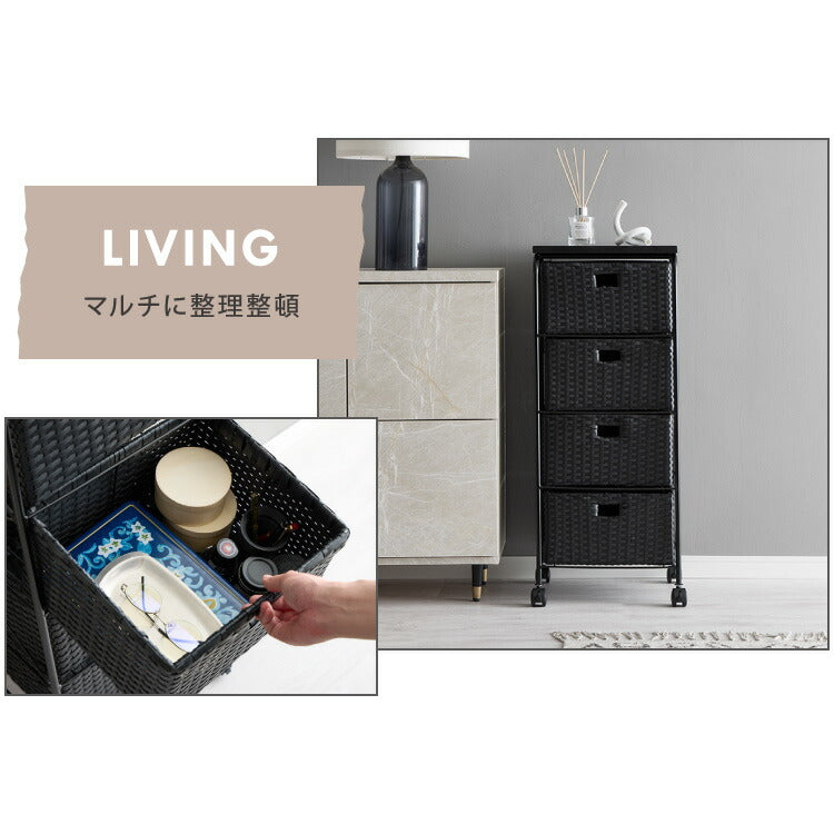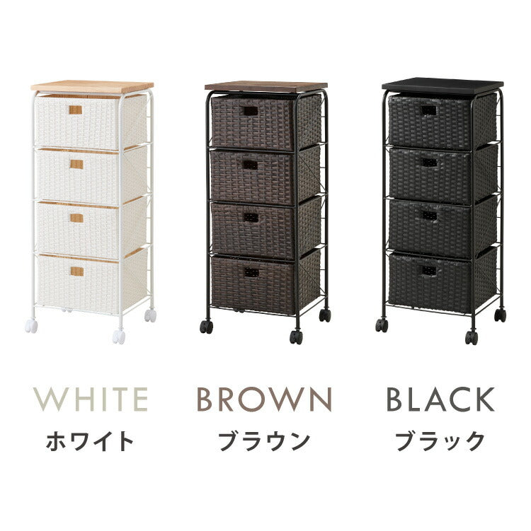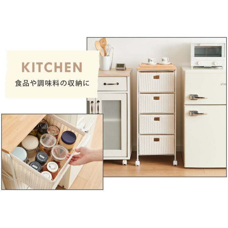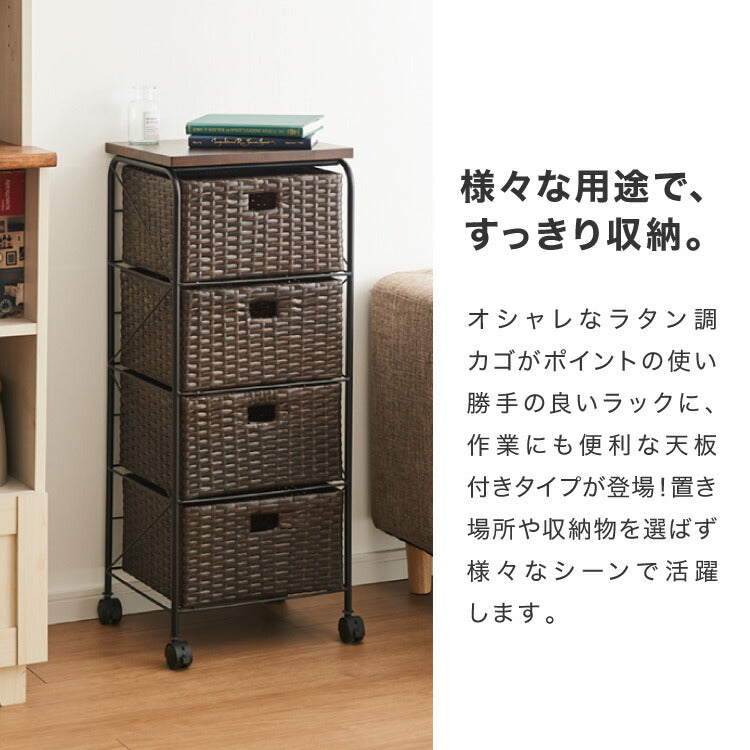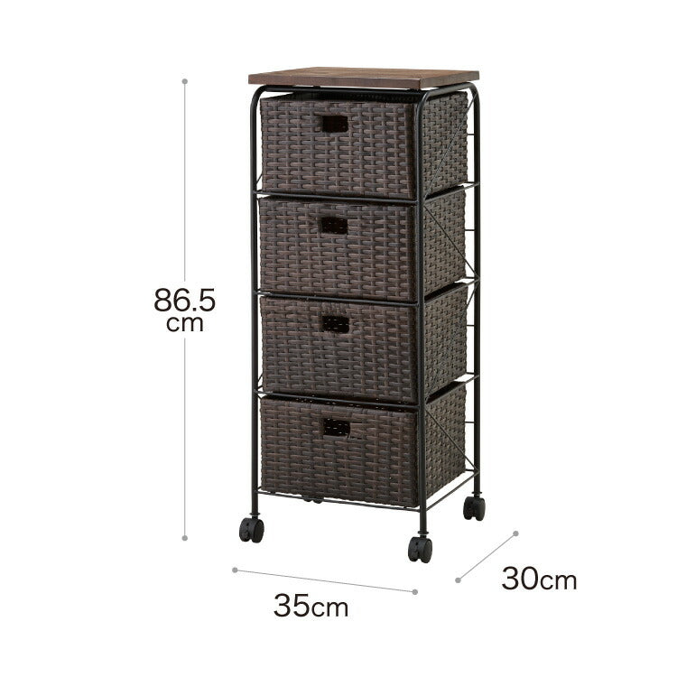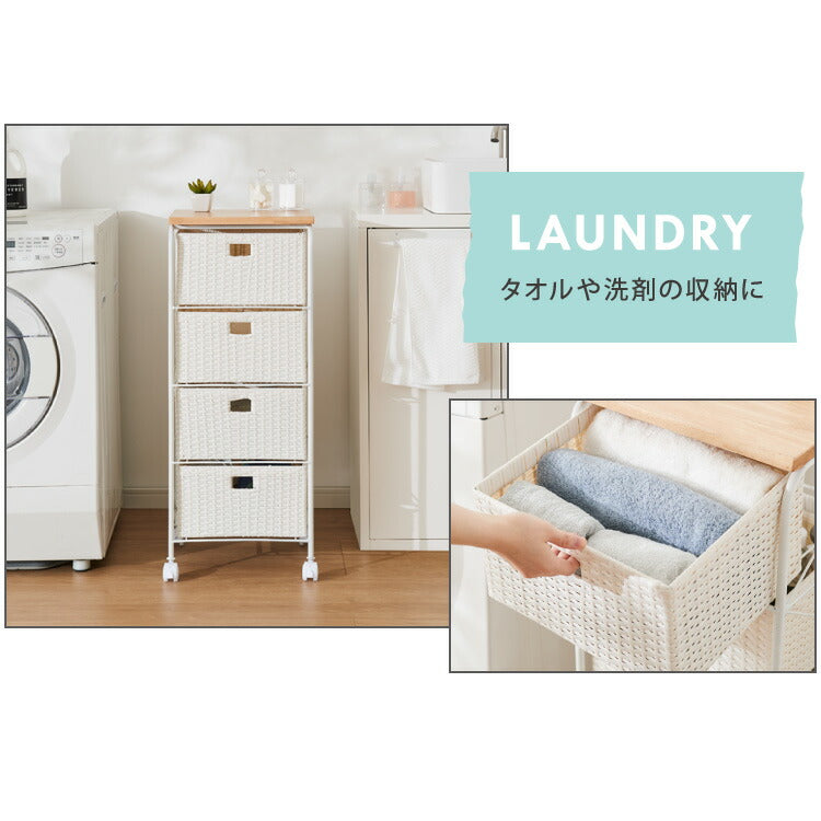 天板付き キャスター付きラタン調サニタリー収納 幅35cm ワイド 大容量 引き出し 木製天板 サニタリーチェスト サニタリー すき間 チェスト ランドリー 棚 ラック チェスト ランドリー収納
