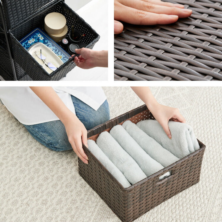 天板付き キャスター付きラタン調サニタリー収納 幅35cm
