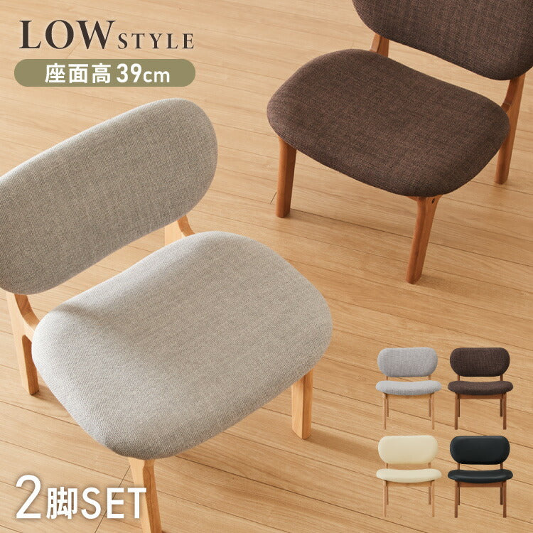 座面高39cm ゆったりダイニングチェア 2脚セット 幅55cm ダイニングチェア ロータイプ 天然木 ファブリック ダイニング チェア パーソナルチェア 1人掛けソファ 椅子 いす イス おしゃれ 二脚セット