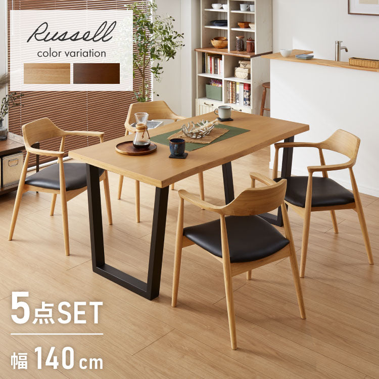 ダイニングセット 5点セット 北欧チェア ラッセル 天然木 ダイニングテーブル 140×80cm ひじ掛け付き 4人掛け なぐり加工 ダイニングテーブルセット 140cm テーブル 長方形 4人用 5点 木製 北欧(代引不可)