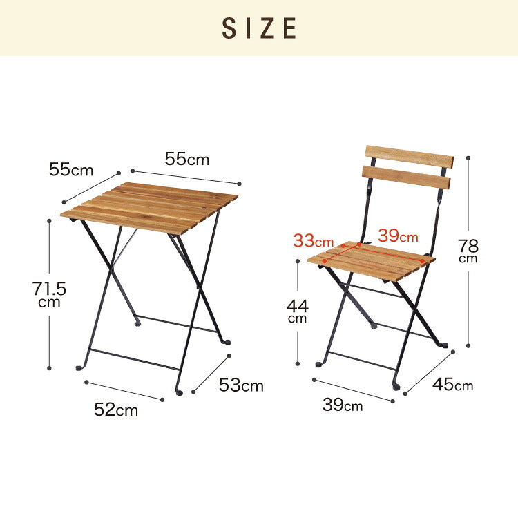 アカシア×スチール ガーデン3点セット アカシア ガーデンセット 55cm 天然木 コンパクト 折りたたみ可能 ガーデンテーブル ガーデンチェア 2脚 木製 ベランダ ガーデンファニチャーセット