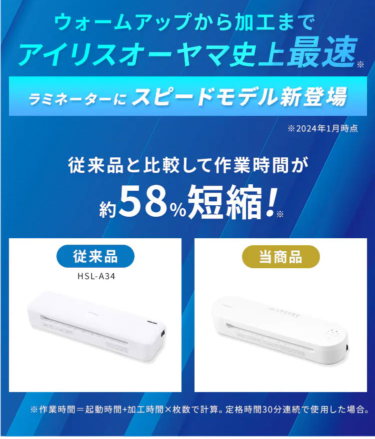 また、A4用紙1枚あたり約30秒で加工できる。(60Hzの場合。50Hzの場合は約36秒。)