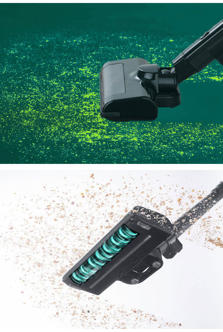 ブラシが回転し、すき間に潜んだゴミもしっかりかき出す。