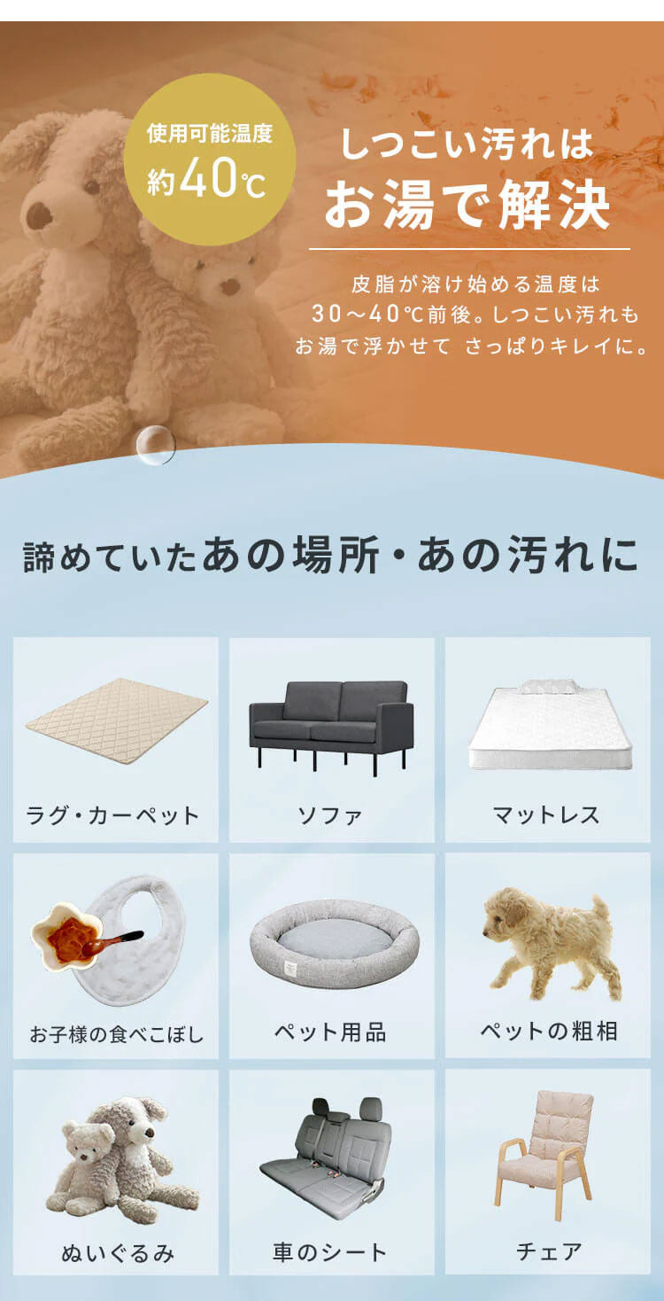 パワフルな吸引力で、布製品に付いた様々な汚れを落とすことができます。