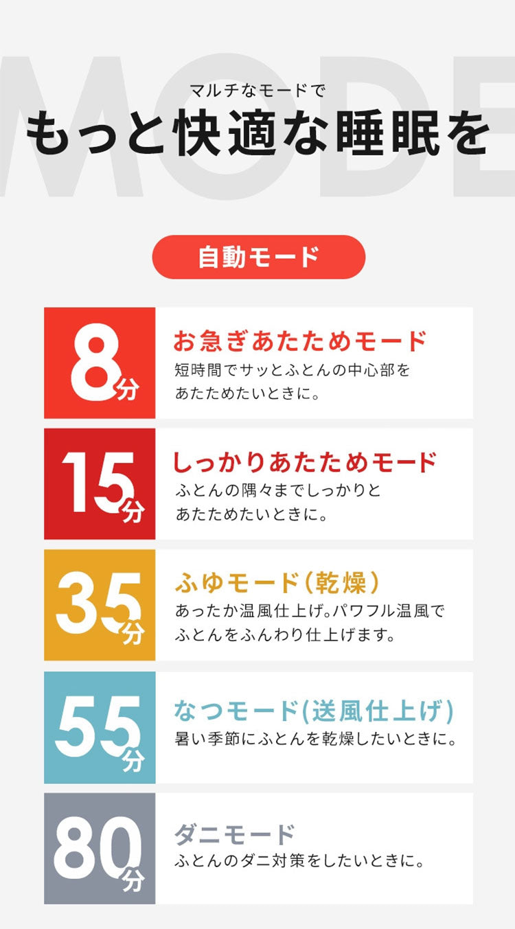※ダニモードの使用は1年に1~2回、季節の変わり目にふとんを変えるときなどにすると効果的です。
