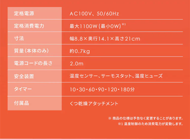 最大1100Wのハイパワーで布団があっという間にふんわりあたたかく。
