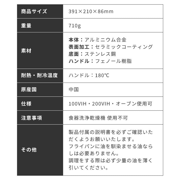 本体:アルミニウム合金 (表面加工:セラミックコーティング)、ステンレス鋼(底面)