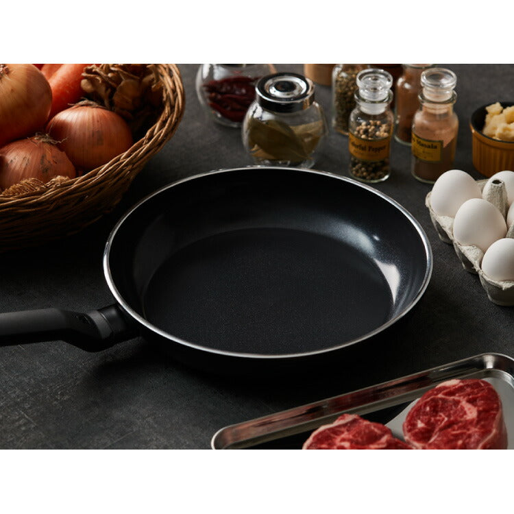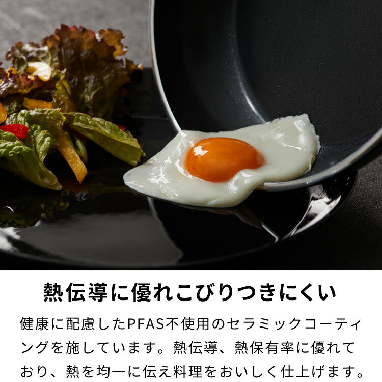 熱伝導性に優れ、こびりつきにくい、セラミックコーティングを施したフライパン。
