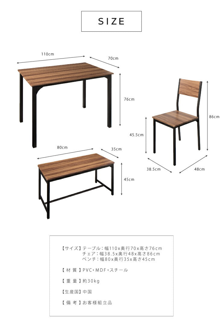 ダイニング4点セット 4人掛け ダイニングテーブルセット 110cm幅 ダイニング ダイニングテーブル ダイニングチェア セット