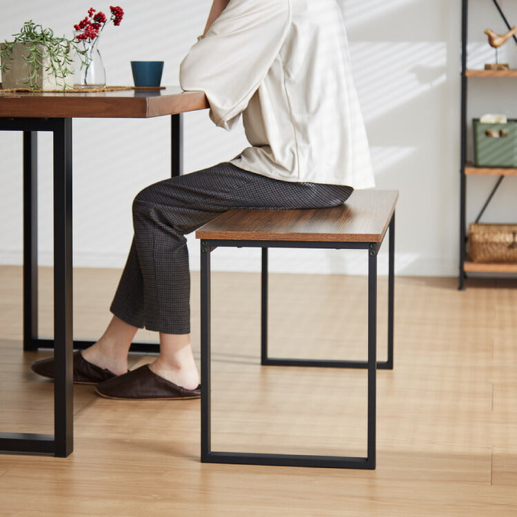・リアルな木目調天板とブラックのスチール脚がおしゃれなダイニングベンチ