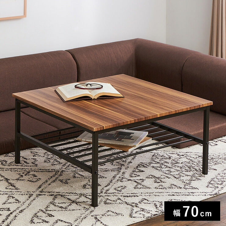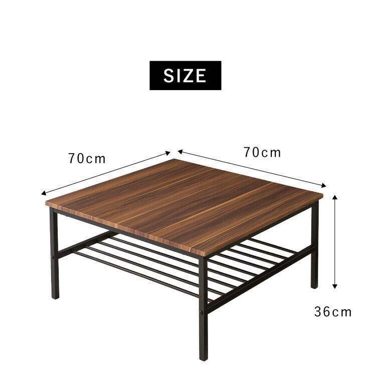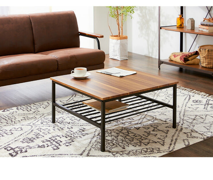 センターテーブル 正方形 おしゃれ 棚付き 収納 木目 スチール ブラウン リビング テレワーク 在宅勤務 一人暮らし 新生活 テーブル ローテーブル リビングテーブル 座卓 棚付 モダン レトロ 北欧 ヴィンテージ