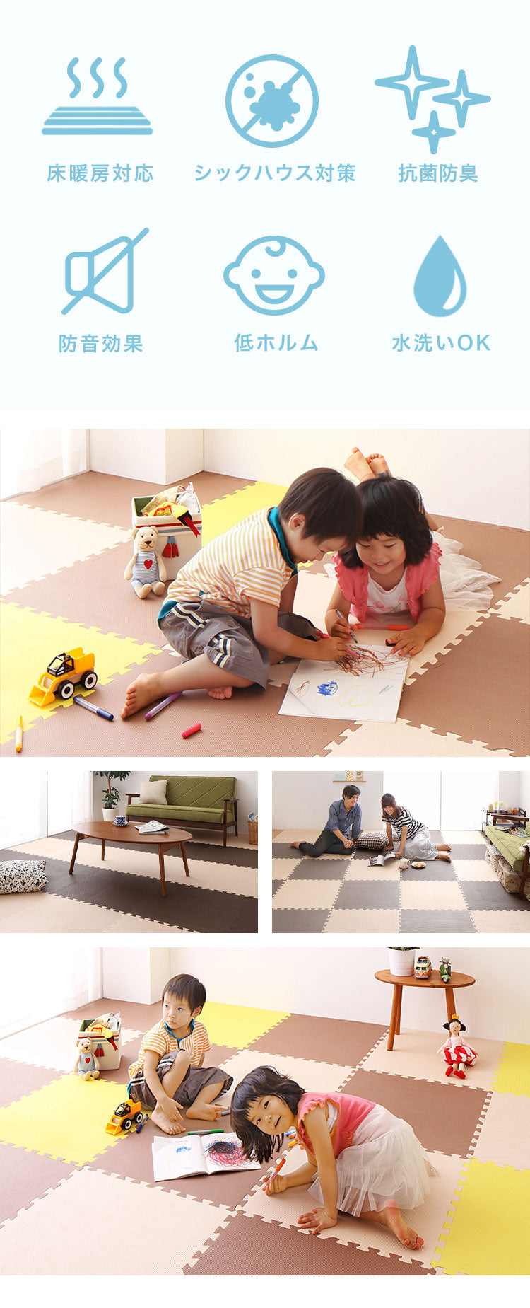 ピンク、ブルー、低ホルム、ISO9001、バイカラー、パステルカラー、くすみカラー、ペット、おしゃれ、無地、低ホルムアルデヒド、3畳相当、ベビー、丸洗い、カーペット、ジョイント、マット、ごろ寝、カットOK、赤ちゃん、キッズ、プレイルーム、リフォーム、DIY、パズルマット、レイアウト自由