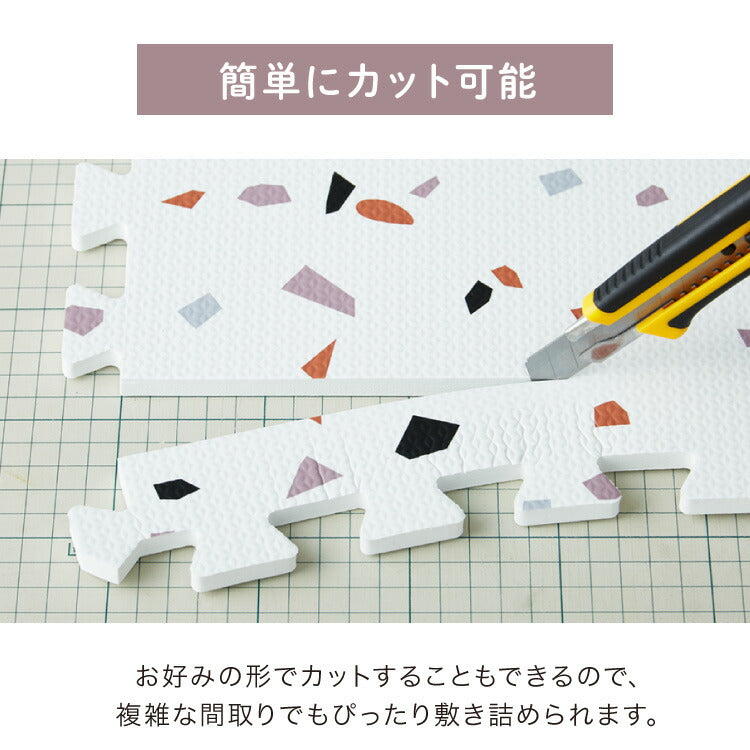 ジョイントマット 大判 61cm 32枚 テラゾー柄 PE樹脂 低ホルムアルデヒド 6畳相当 32枚組 洗える 防音 断熱 保温 サイドパーツ付 レイアウト自由 安心素材 おしゃれ フロアマット プレイマット