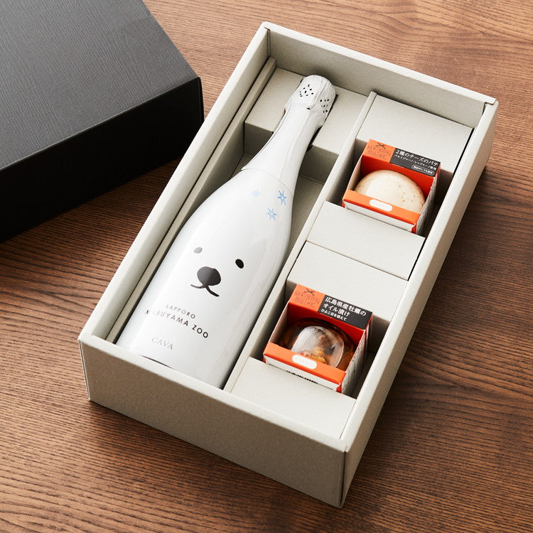 シロクマ・ブリュットとおつまみ2種セット ギフト プレゼント プチギフト 贈答用 贈り物 手土産 箱 化粧箱 札幌 円山 動物園 シロクマ カヴァ スペイン ワイン スパークリングワイン おつまみ セット