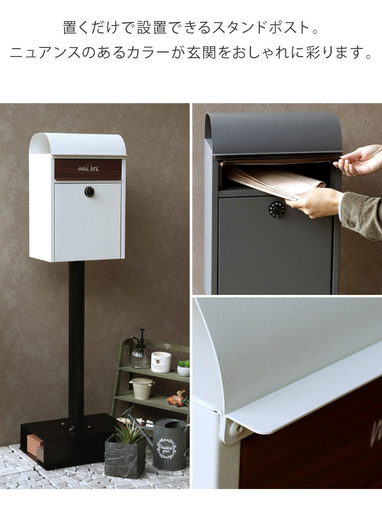 スタンドポスト ダイヤル錠 ポスト 置き型 郵便ポスト 郵便受け スタンドタイプ 置き型ポスト メールボックス スタンド 一戸建て 鍵付き ダイヤル式 A4 大容量 ステンレス 北欧 おしゃれ(代引不可)