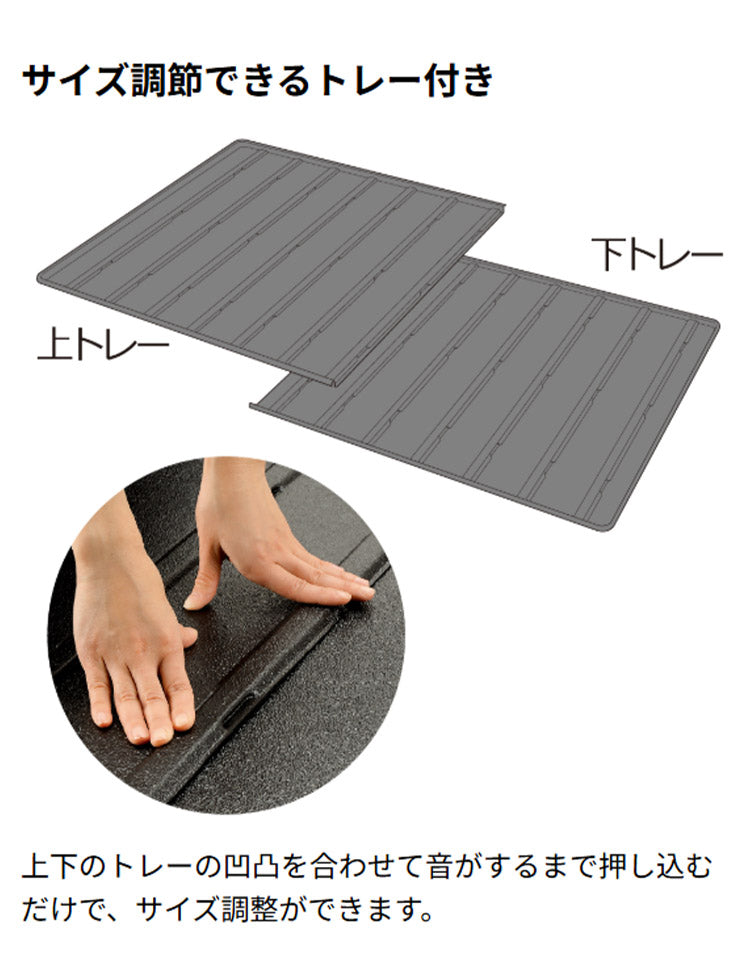 フレーム部:天然木(ラッカー塗装)、ワイヤー部:スチール(ポリエステル塗装)、ゴム脚:熱可塑性エラストマー、トレー・ドアロック・滑り部材:ABS樹脂