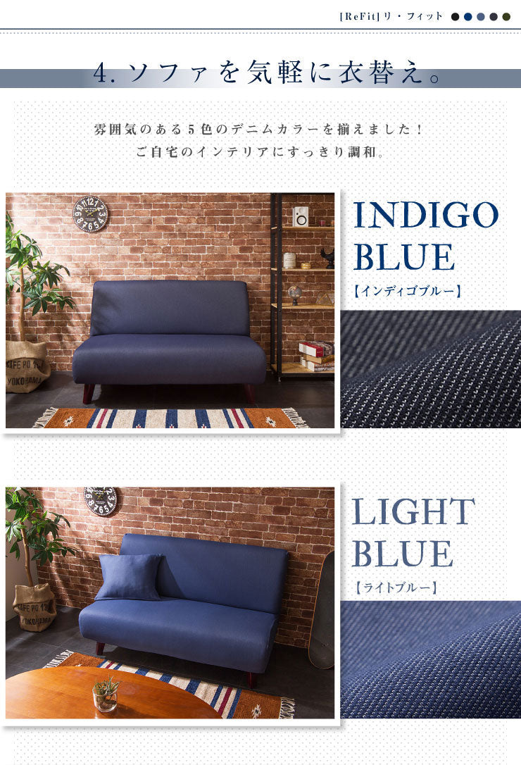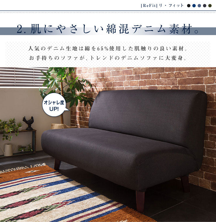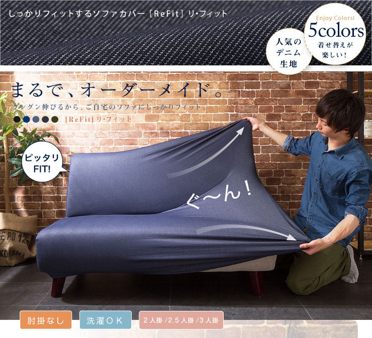 ソファーカバー 3人掛け 肘なし ニットデニム生地 3人用 デニム モダン 北欧 おしゃれ 洗える ウォッシャブル 汚れ防止 ズレない 伸縮素材 [ReFit] リ・フィット 肘掛けなし 肘無し ソファカバー カバー