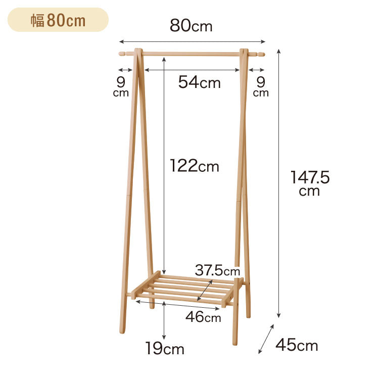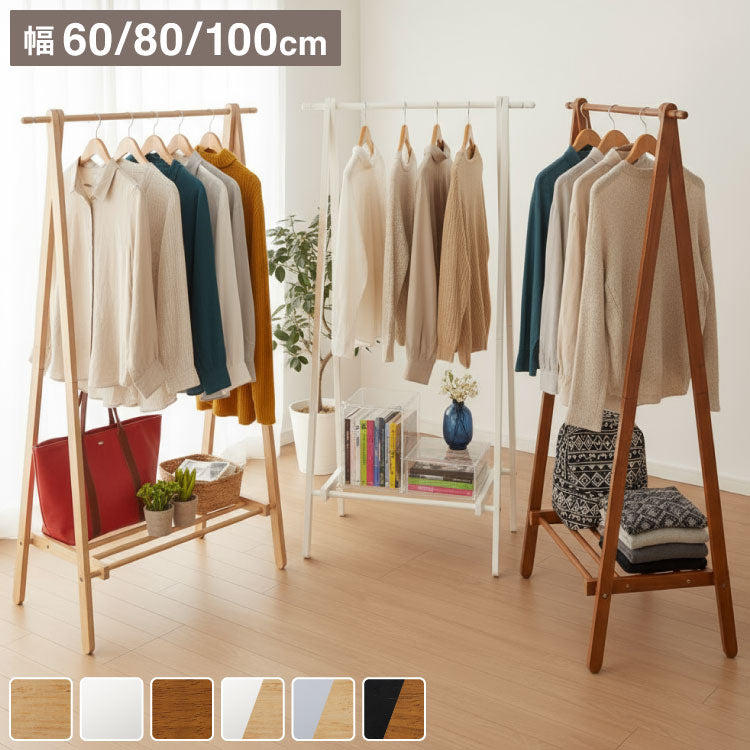 天然木 ハンガーラック 幅80cm 棚付き A型ハンガーラック 折りたたみ 省スペース コンパクト スリム ナチュラル ハンガーラック 木製 ポールハンガー コートハンガー 洋服掛け 衣類収納 木製