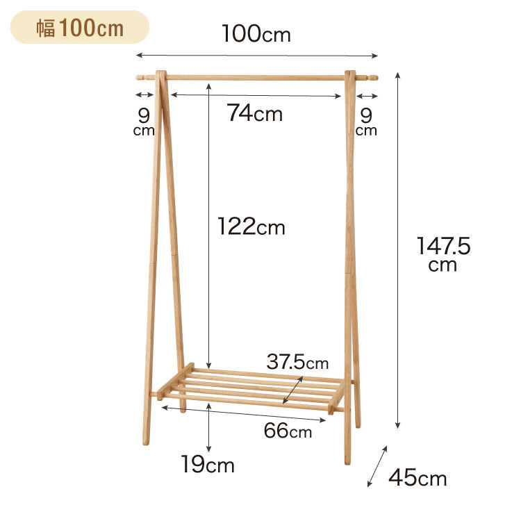 ・どこのお部屋にも馴染むシンプルな木製ハンガーラックです。