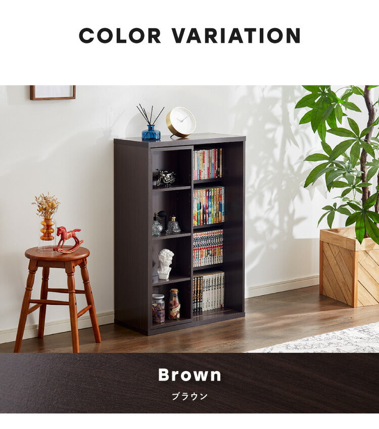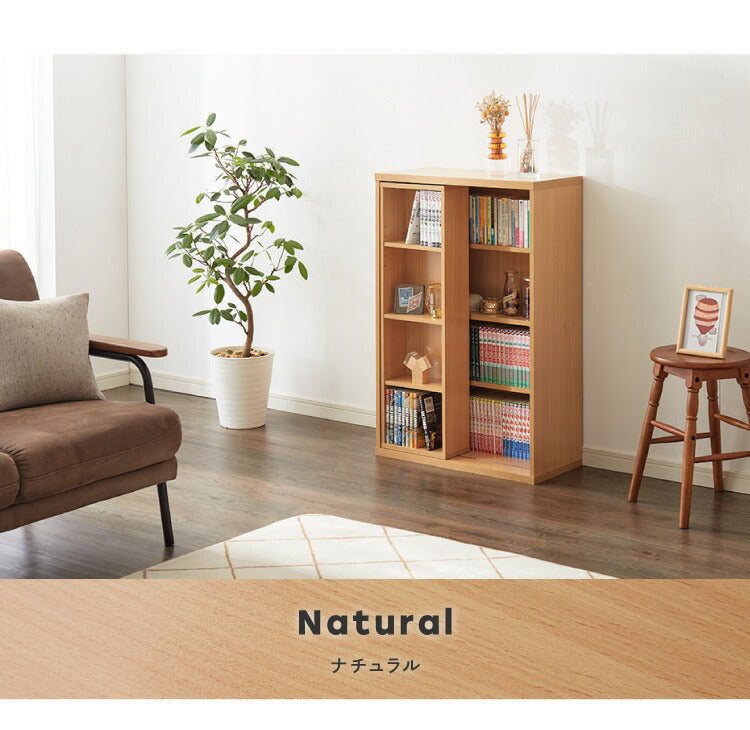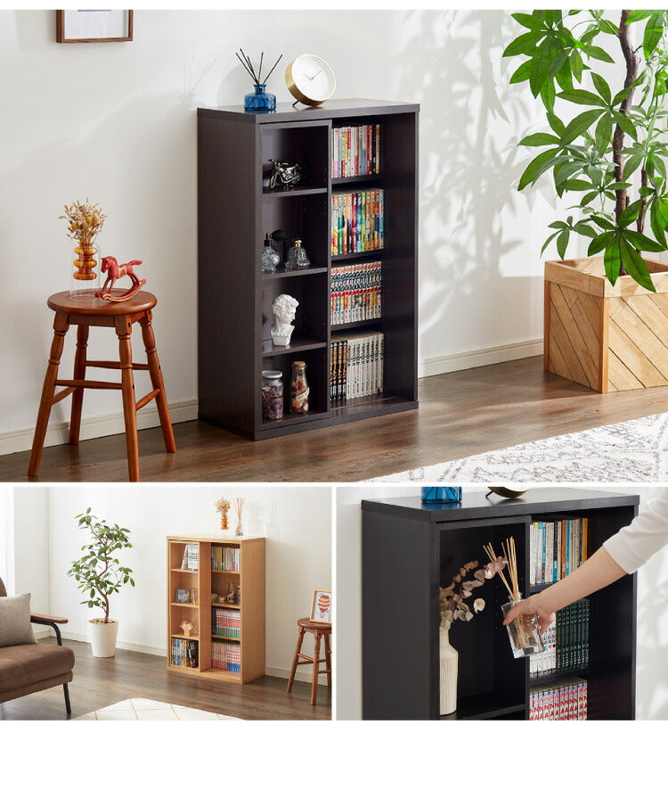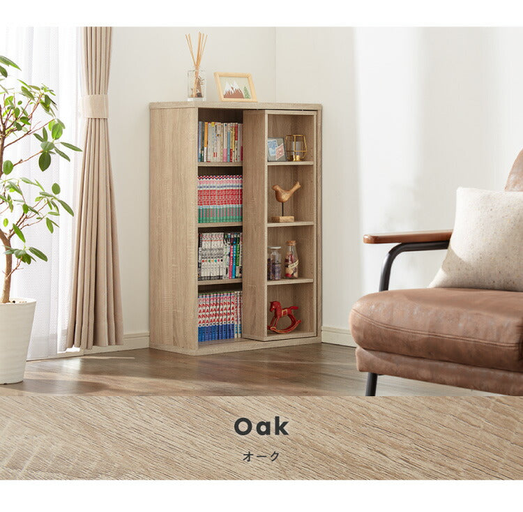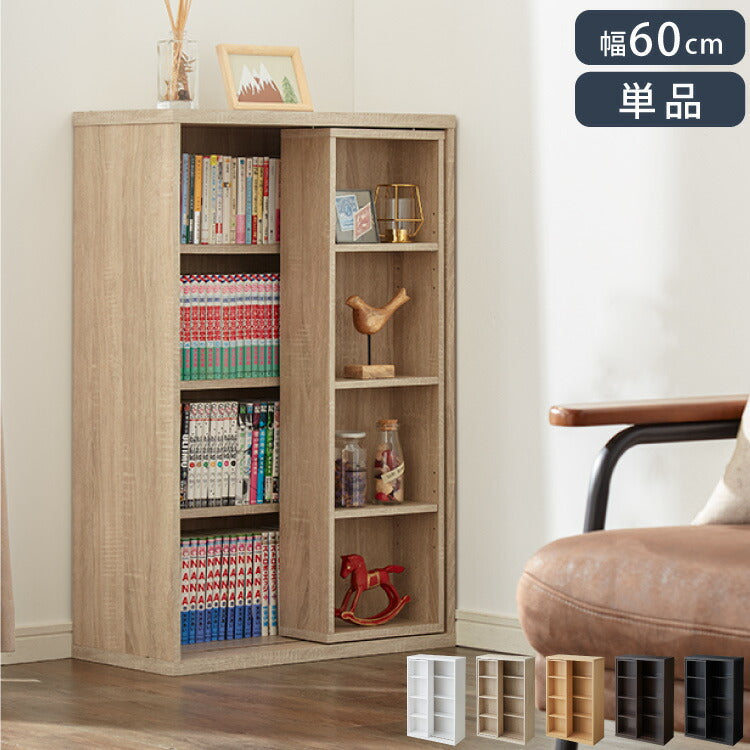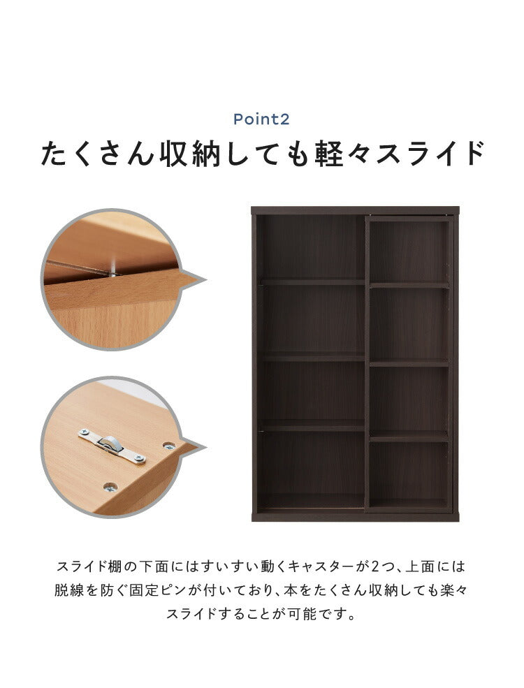 本棚 書棚 スライド式 幅60 シングル 4段 木製 コミックラック 漫画 書籍 収納 大容量 ブックシェルフ 木目 おしゃれ ブックラック 書斎棚