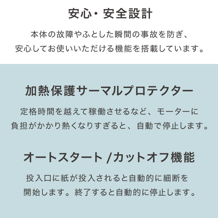 ※最大8枚同時細断可能ですが、継続的に8枚細断を行いますと機械に負荷がかかり、連続使用時間が短くなります。