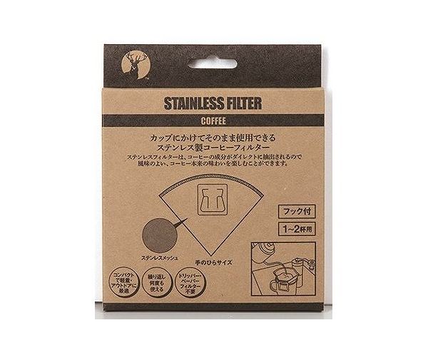 コーヒー本来の味わいを楽しむことができる、ステンレス製コーヒーフィルター。カップにかけてそのまま使用できる。製品サイズ(約)幅12x高8.5mm(収納時)重量(約)13g材質(品質)メッシュ/ステンレススチール、糸/ポリエステル繊維、フック部/18-8ステンレス鋼原産国台湾